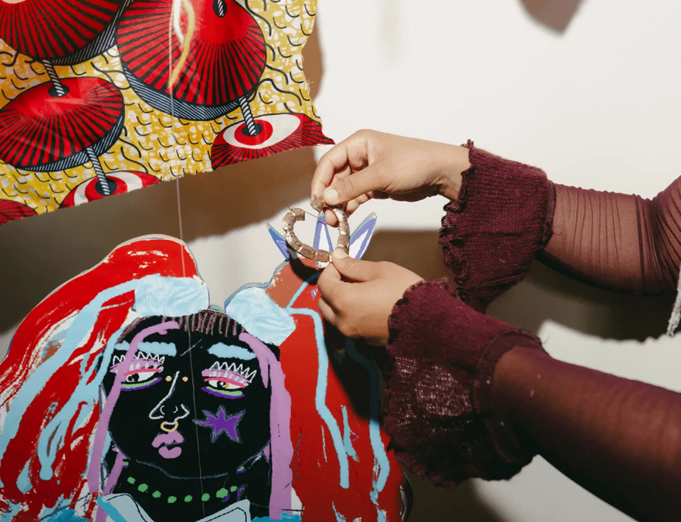 I don’t like to restrict myself to one material. I think some artists feel they need to choose one material to maintain their brand identity and keep people engaged, but for me, the material speaks to me based on the work I am doing. So I might create an illustration that ends up becoming a fabric, or I might start with an embroidery piece and that ends up becoming a moving image or video. The materials really gravitate towards me, and I like to play and experiment with lots of different materials without restricting myself to one.