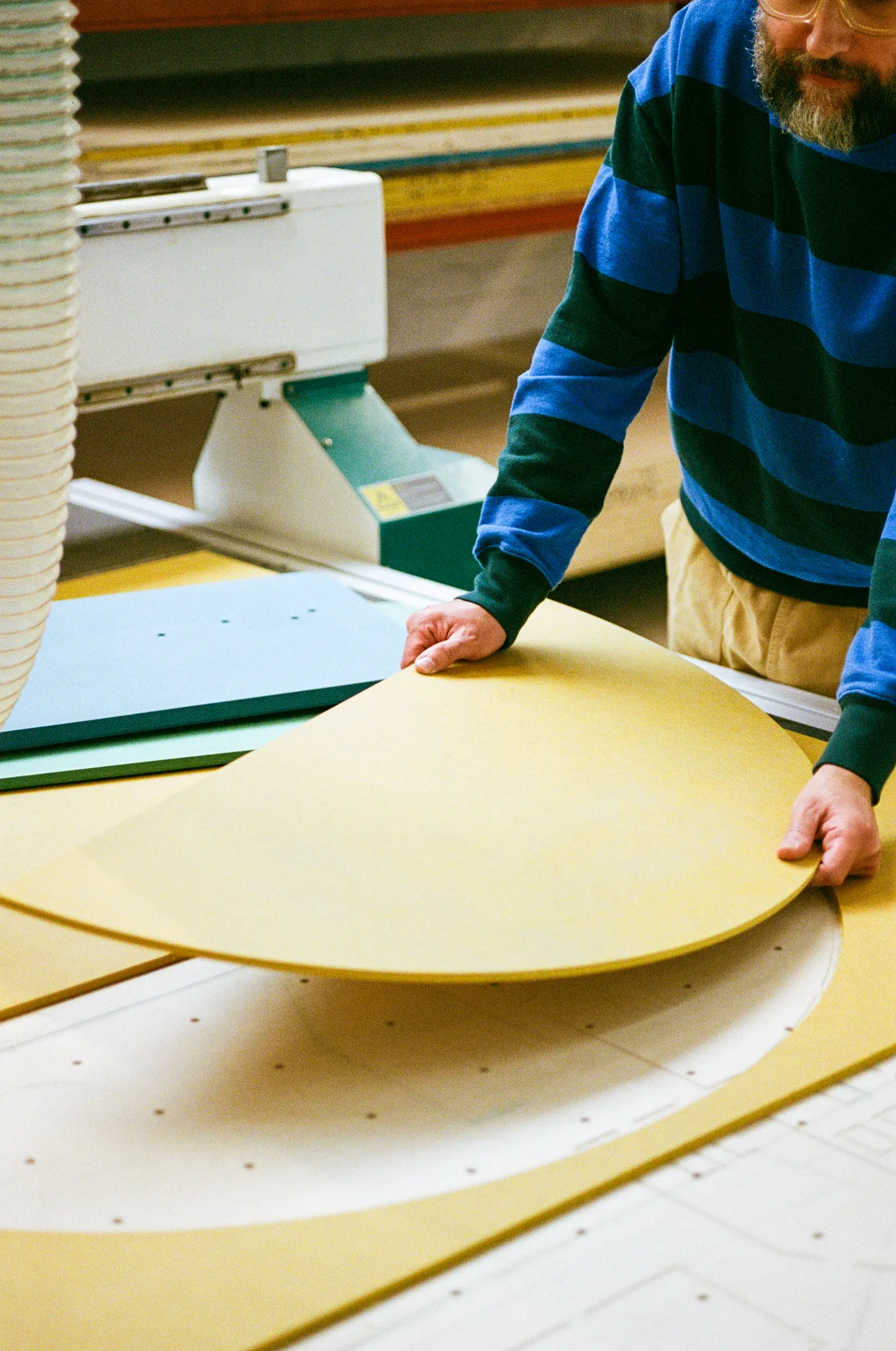 I work with a limited material palette of Valchromat and plywood. This has given Plaey a signature and recognisable style. We will occasionally add another material depending on the project, such as a solid surface, jesmonite or now paper.