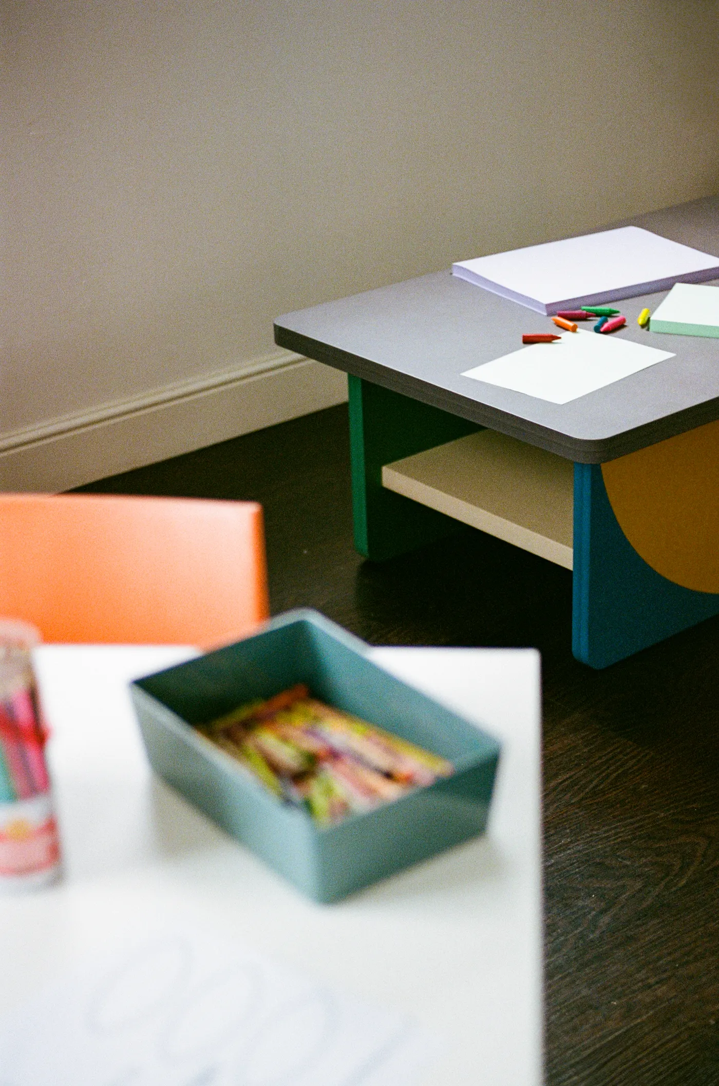 I work a lot with education and learning teams in art Galleries & museums. I think it's down to my colourful but considered designs that lend themselves to these environments. Plaey is well known for our Art Carts that sit in gallery spaces and invite play and exploration. So I have been thinking a lot about this over the last few years. I think the more we can encourage creativity, the better. The ColorPlaey table really is that in a nutshell, two stacks of paper, pens and the potential to play.