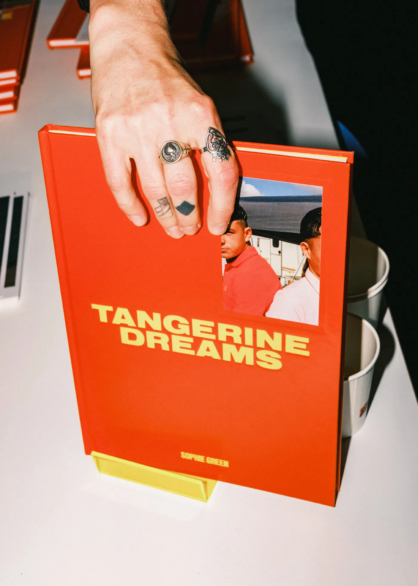 Designed by Colville-Walker and printed by Pureprint in a limited-edition run of 150, Tangerine Dreams features a UV layer gloss laminated GF Smith Colorplan Mandarin hardcover, with a plate sink area inviting you to personalise your copy with a choice of three coloured stickers. The inner pages are printed using 86 colour plates onto GF Smith Max, a paper chosen for its ability to showcase images in stunning detail, paired with vibrant GF Smith Colorplan Factory Yellow endpapers.